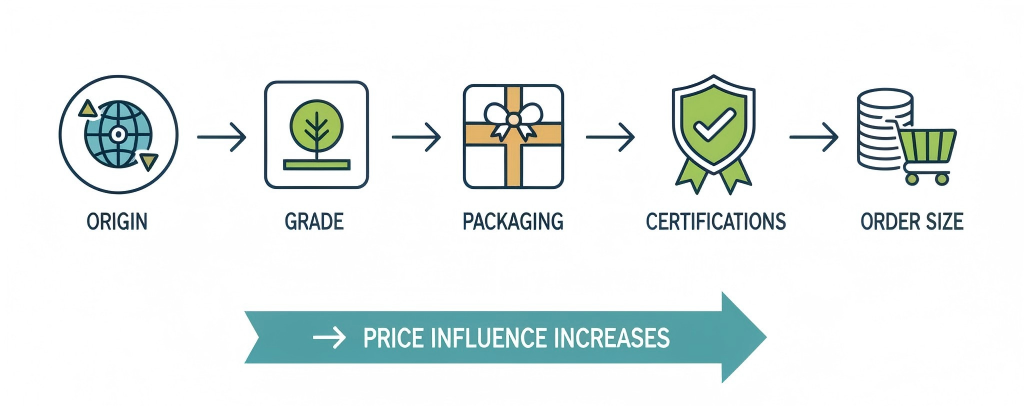 Origin | Impacts flavor, price, and quality |