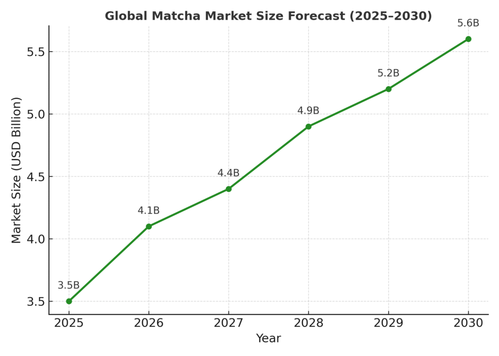 Insight: The matcha industry is projected to grow from USD 3.5B in 2025 to USD 5.6B by 2030, with a CAGR of around 7–8%.